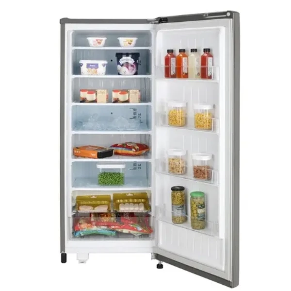 This upright freezer is as stylish as it is functional. The elegant Platinum Silver finish and the minimalist pocket handle give it a contemporary look that seamlessly integrates into any home decor. Its upright design takes up less floor space than a traditional chest freezer, making it an ideal choice for apartments and homes where space is at a premium.